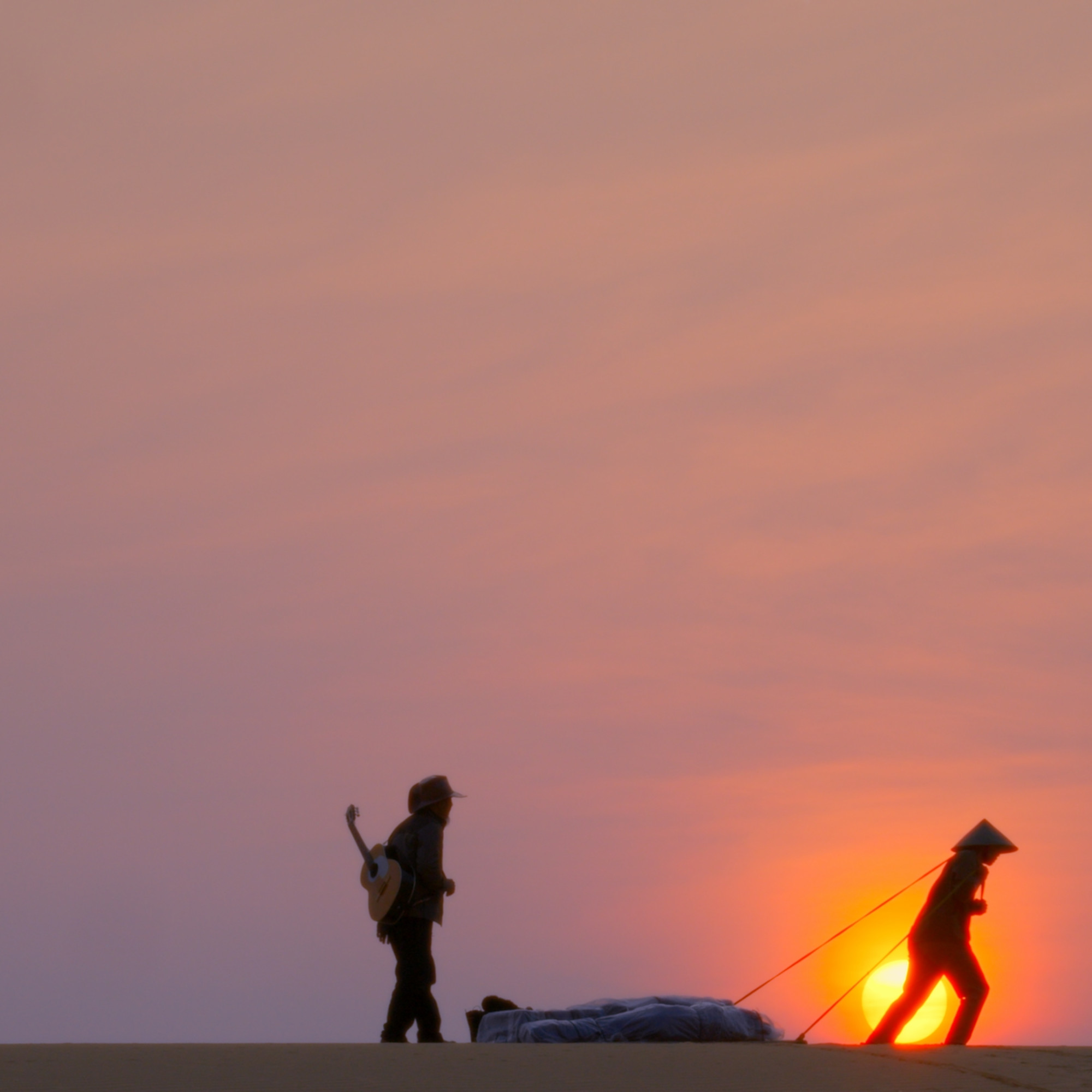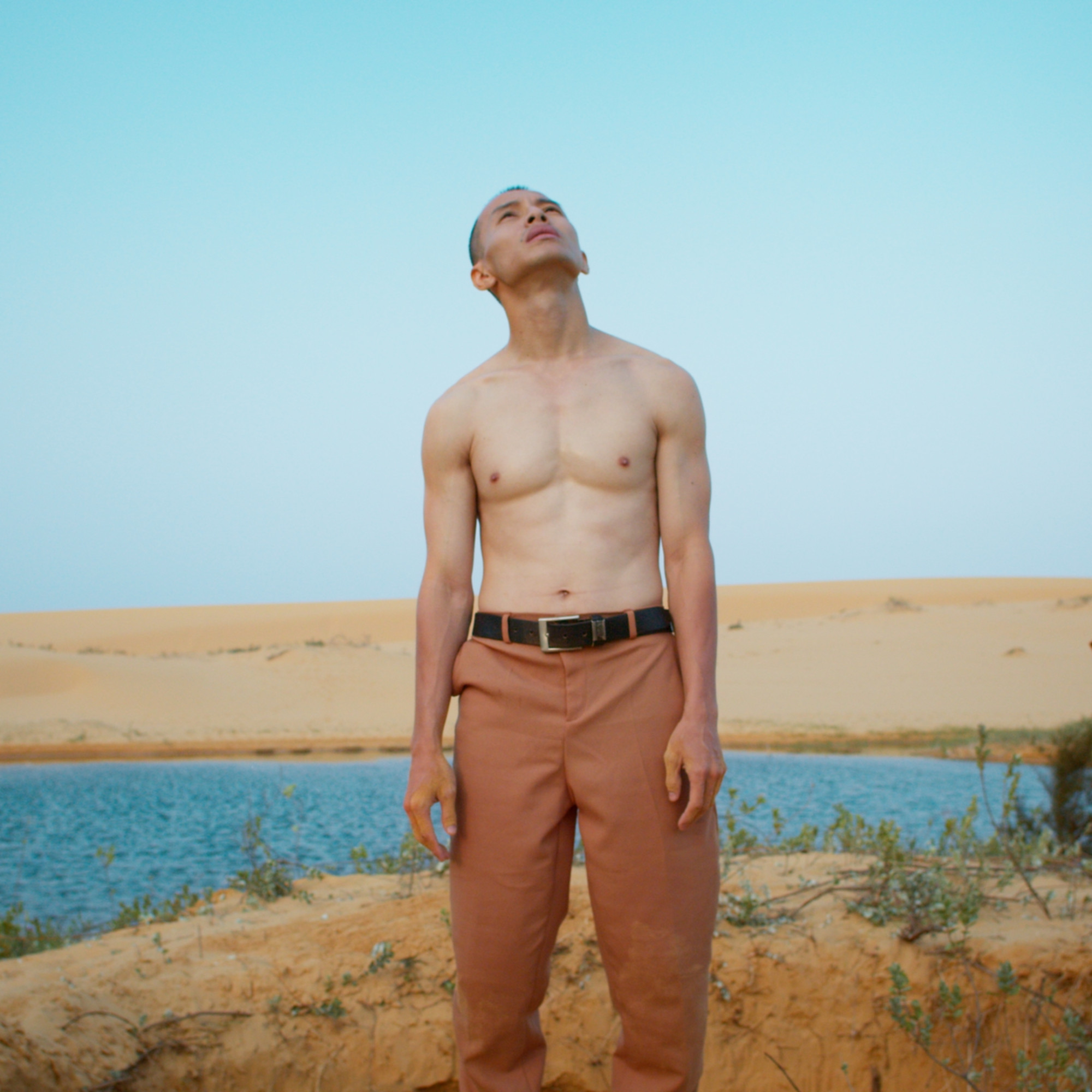 A thief, suddenly distracted by the sight of a papier-mâché statue with an enigmatic face, is caught in a trap and kidnapped by the owner of the place he was attempting to rob – the sprinkled sprinkler. This premise may be as old as cinema itself, but it feels anything but outdated in Nguyễn Lê Hoàng Phúc's unusual vision. The astonishment continues when the host makes a very particular request of his captive: he wants to join his wife—whose mummified body is hidden inside the strange statue. Absurdly tender, Bury Us in a Lone Desert begins like this, a playful and colorful version of Taste of Cherry (Abbas Kiarostami, 1997).