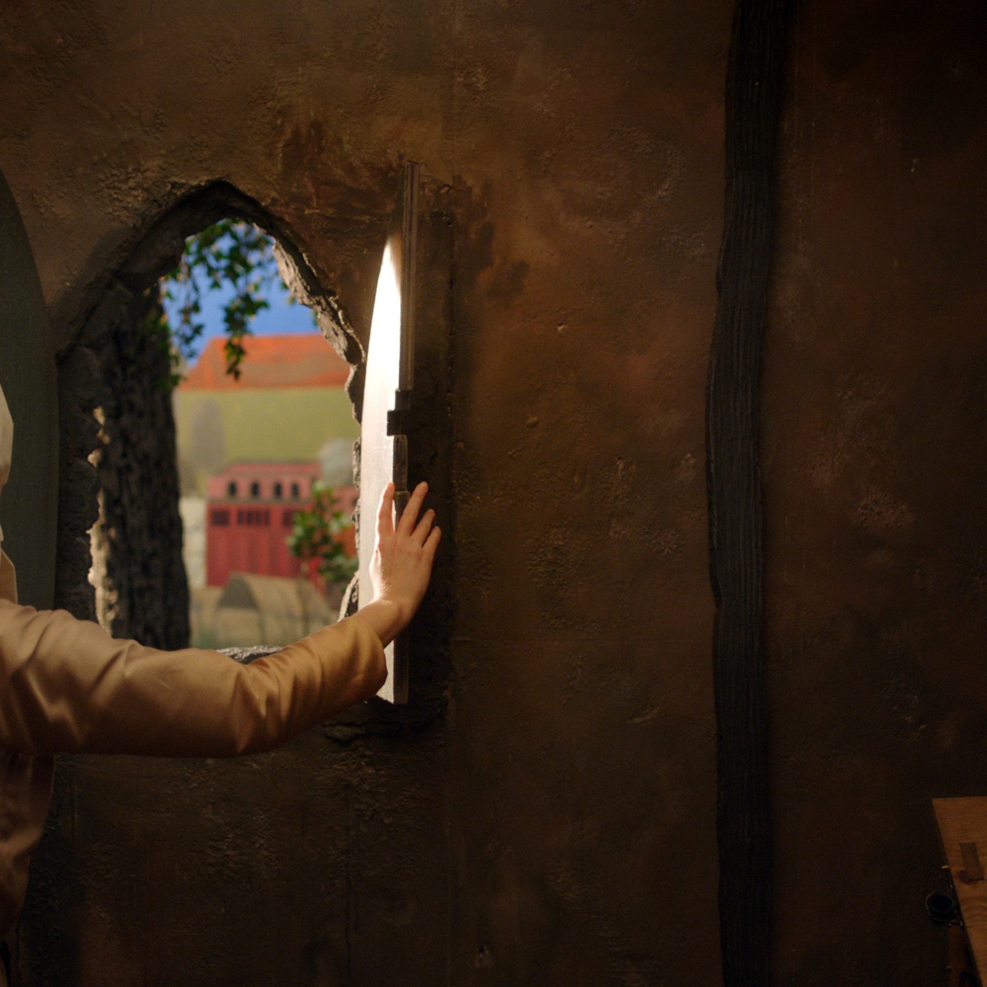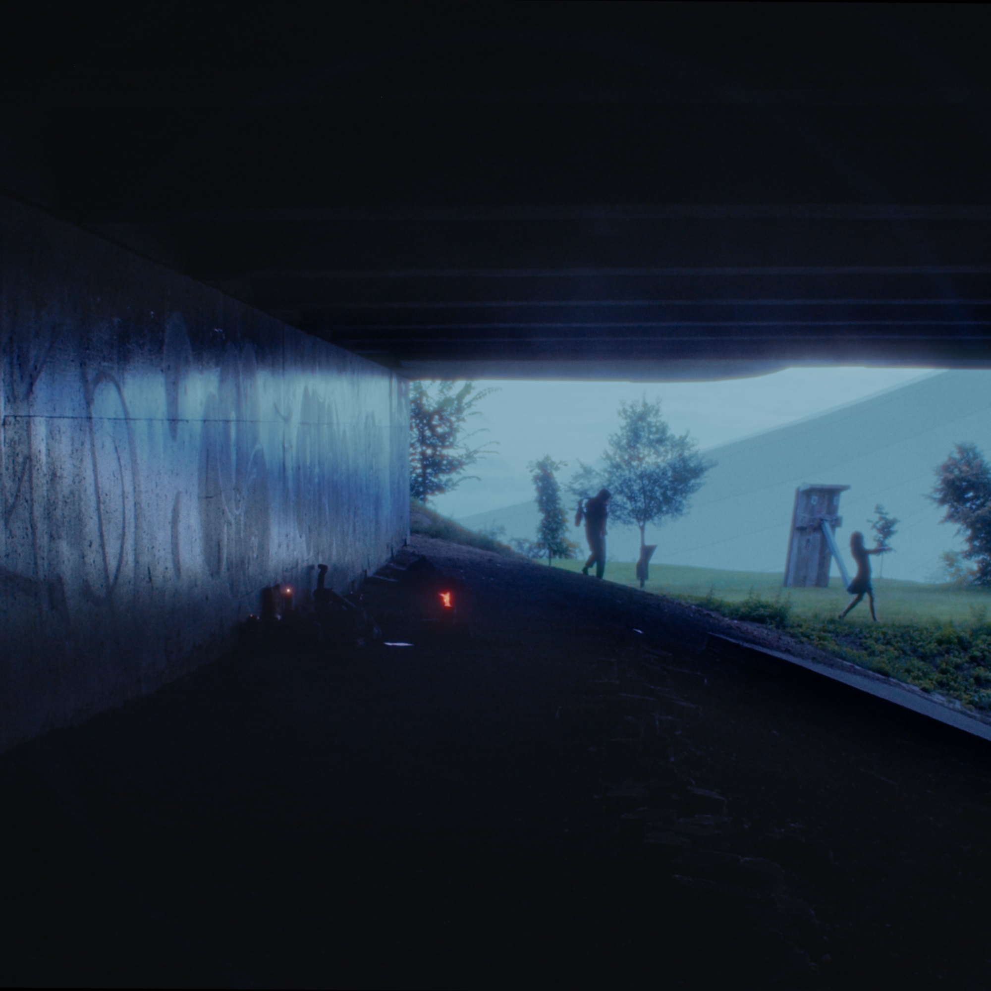 In a place where nothing makes sense anymore, where whispers are tender but barely audible, a resistance takes root, following the inspiration of the trees. A hand touches another already embedded in stone, raising questions about beginnings and butterfly effects: what connects the wave to the fall? To the stream and its rippling?
